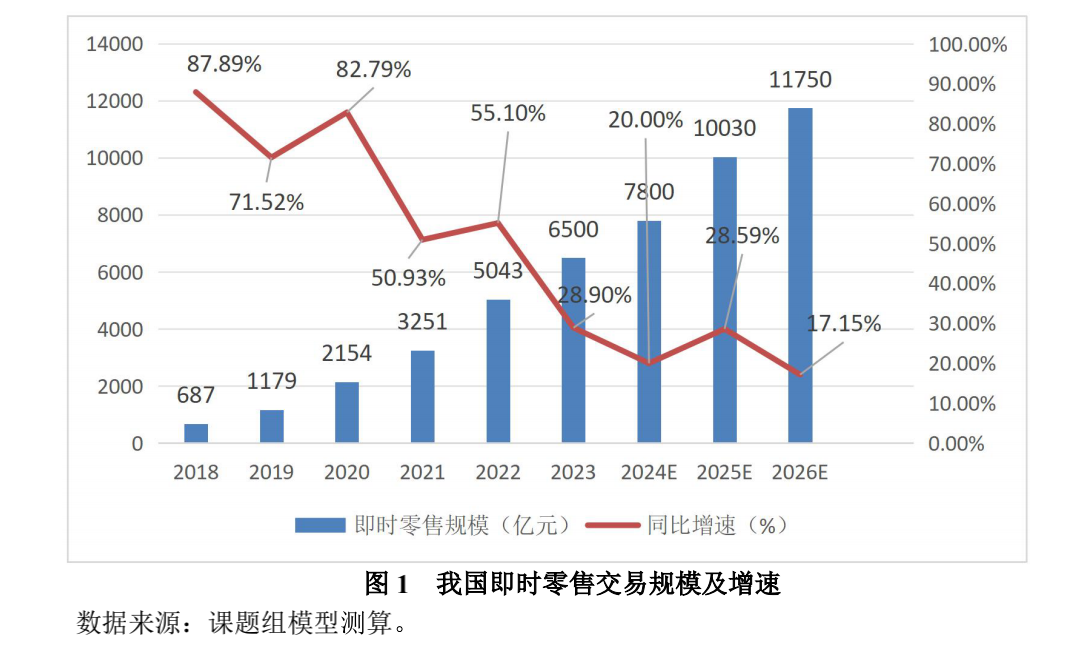 京东亟需找到新增量——即时零售是个优选项。根据商务部发布的《即时零售行业发展报告(2024年)》,2023 年我国即时零售规模达到 6500 亿元,同比增长28.89%,其增速远远高于电商大盘和零售大盘。另据摩根士丹利预测,2030 年,中国即时零售市场规模将以 20% 的复合年增长率增长至 2万亿元人民币。