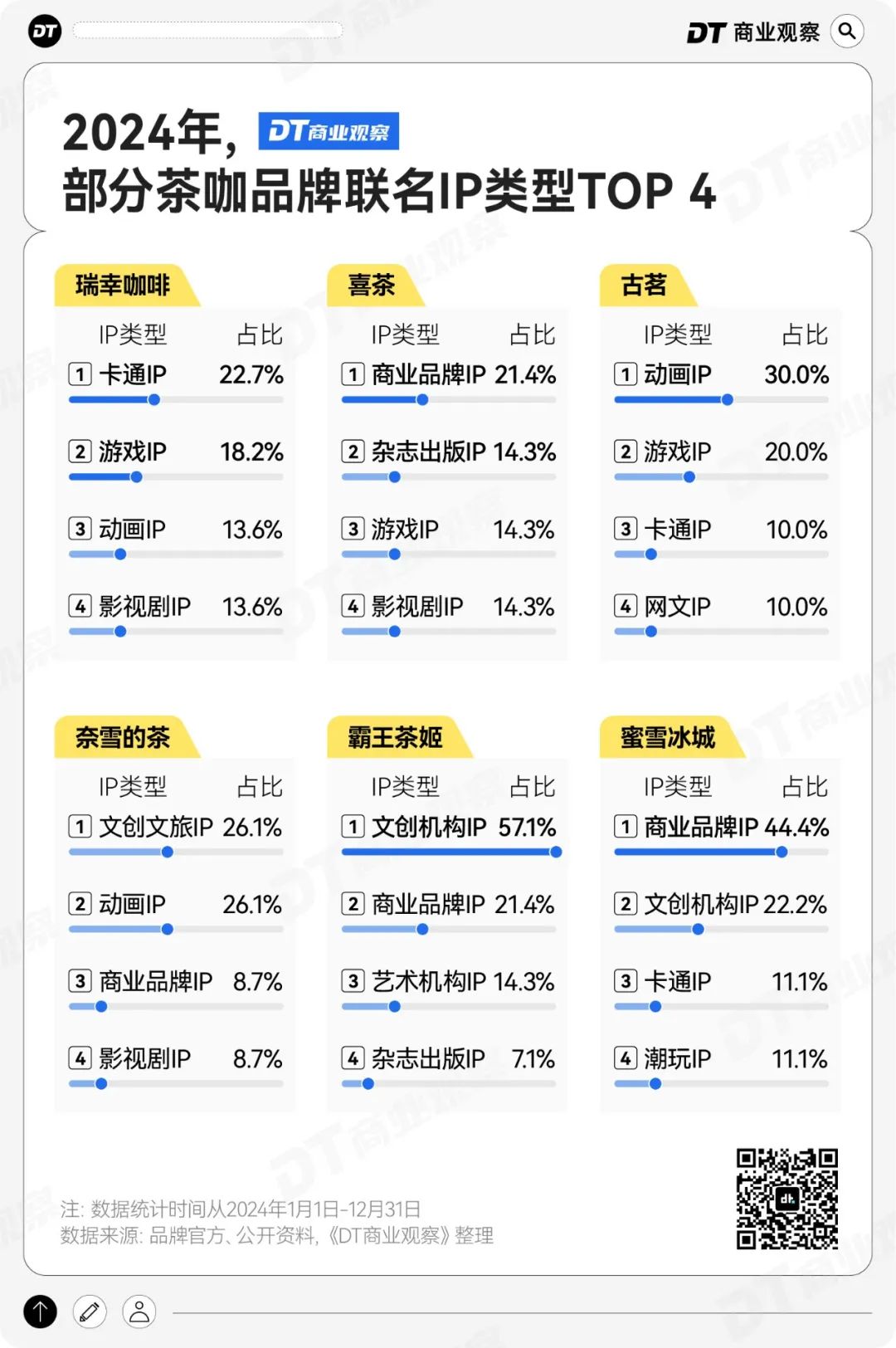 《DT商业观察》查看了喜茶、瑞幸咖啡、奈雪的茶、霸王茶姬等12个主要茶咖品牌的联名情况,进而发现——