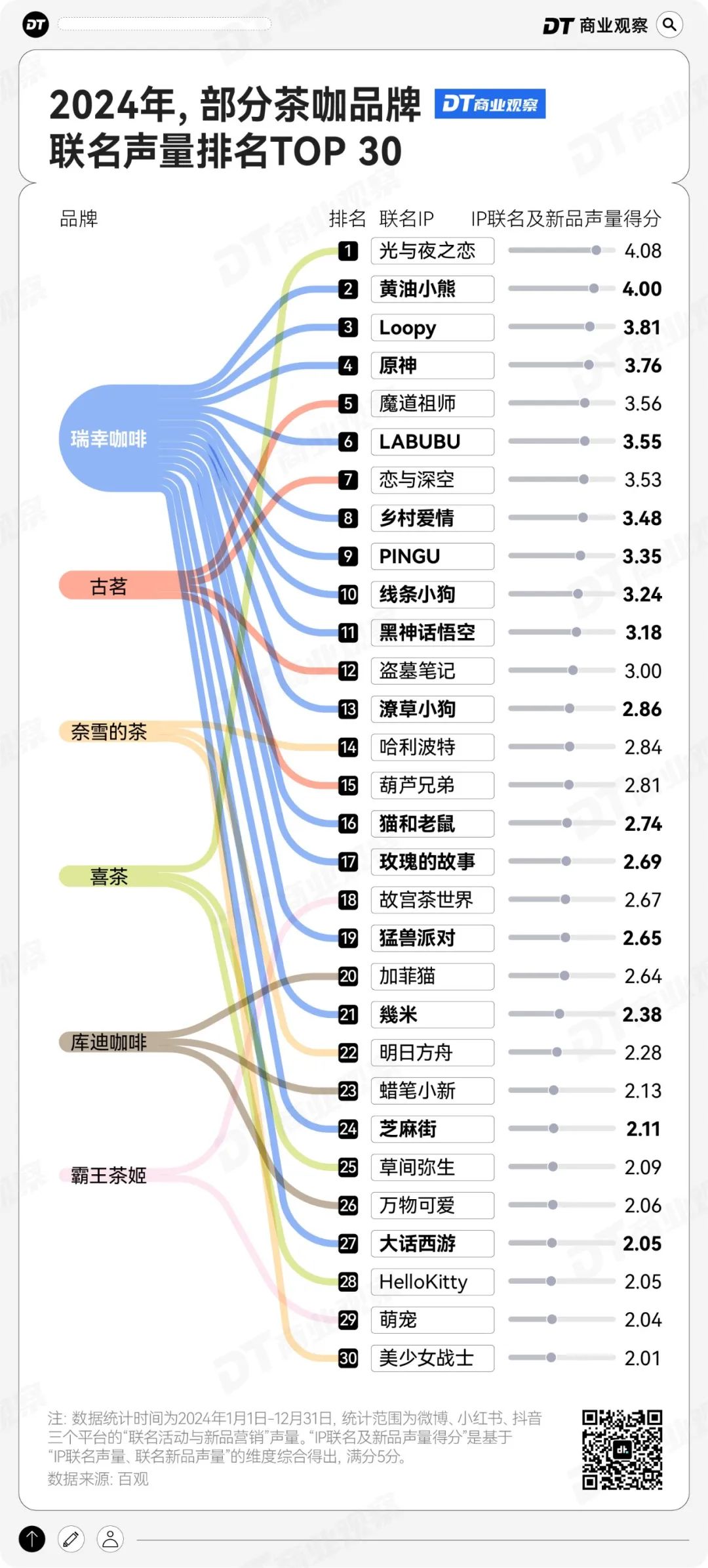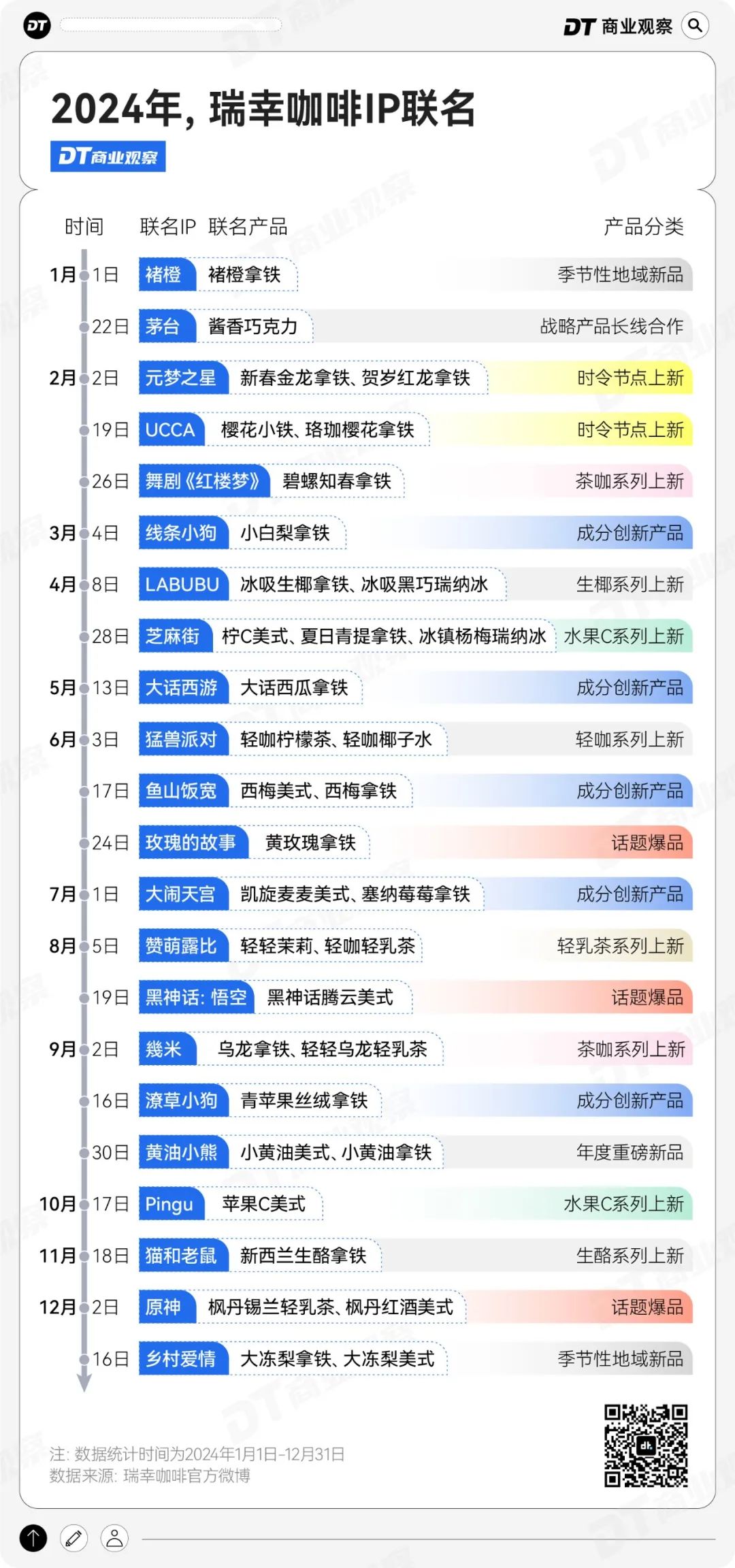 《DT商业观察》盘点了2024年瑞幸的联名情况,发现了瑞幸联名的三个方法。