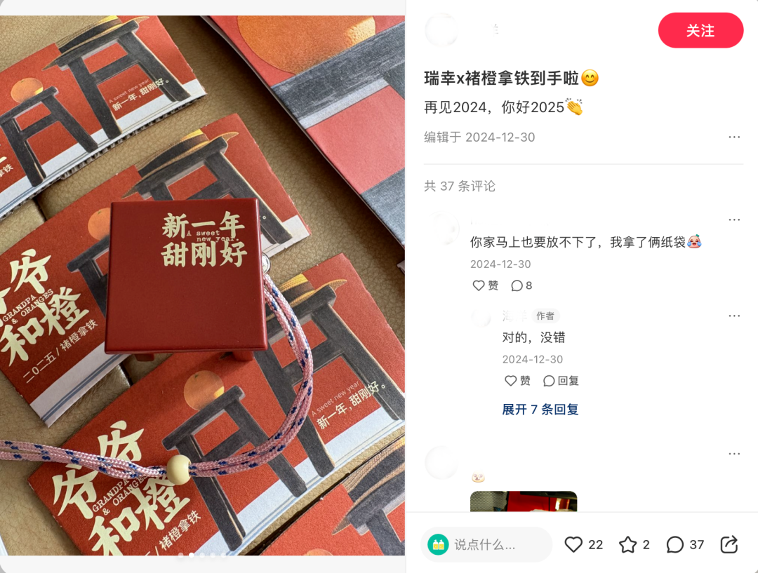 在#瑞幸联名褚橙#等话题下,网友难掩对产品的安利和热情。UGC的传播发酵,让联名产品进一步释放吸引力。