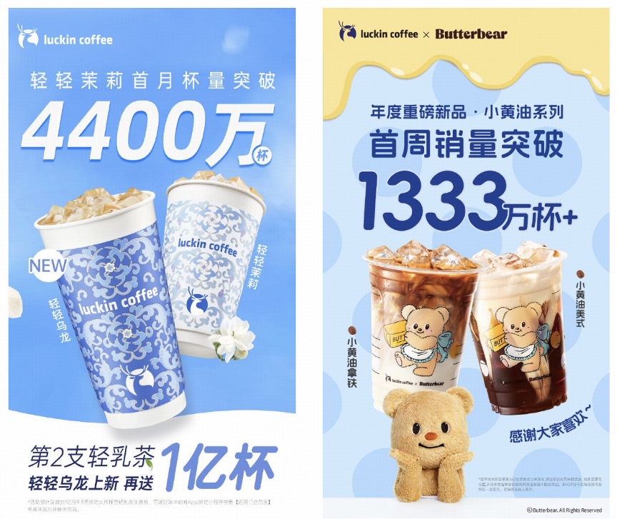 小黄油系列产品选择了与产品名接近的表情包黄油小熊合作,借IP的社交话题和自发传播,首周销量突破1333万杯。