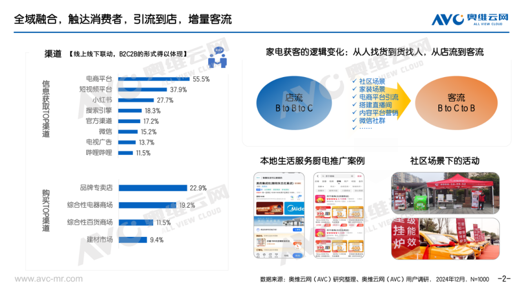 从奥维云网(AVC)用户调研数据可知,多数消费者先通过线上渠道获取产品信息,而后在线下渠道完成购买,这凸显了 B2C2B 模式的可行性。企业通过线上直接面向消费者(B2C),收集反馈优化产品与服务,再凭借线下渠道(C2B)将产品推向更多的消费者和更广阔的市场。这种模式不仅能增加客流量,还能拓展销售渠道,为壁挂炉行业规模的回升与扩张注入新的活力,助力行业在复杂的市场环境中实现突破。