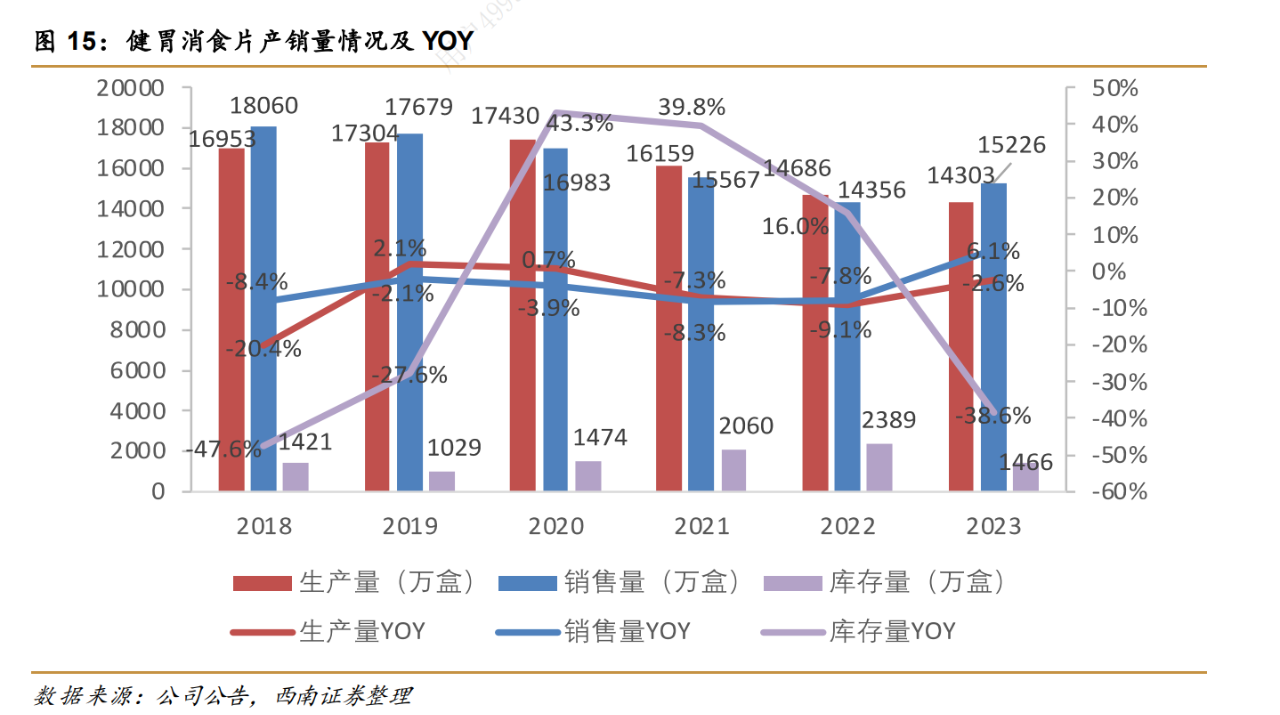 2、江中牌健胃消食片,陷增长瓶颈