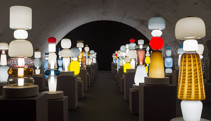 今年 Luca在米兰设计周的展览是一场善用了缤纷的色彩的灯光秀,这些由各色玻璃制作的灯具为原本黑暗的展厅带来了明亮与色彩。