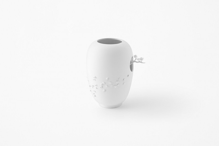 Nendo 也将短暂的樱花之美,永久地存留于家居设计之上。这支由 Sèvres 的陶瓷艺术家制作的花瓶,体现了这家公司超过275年的工艺历史,在狭小的空间中细腻的樱花、花瓣都被细腻地展现出来,瓶身上的花瓣也仿佛刚刚飘落般栩栩如生。