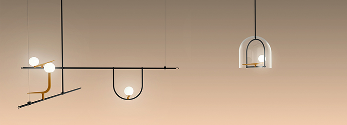 另一组受人关注的设计是如恩为 Artemide 设计的“燕子”系列灯具,这款灯具凝练了上海市井生活中的平常情景:用金属和木的组合模拟了鸟儿在枝杈上休憩或在竹笼中啁啾的动人画面。该系列包括吊灯、落地灯和台灯,由黑色的支架和拉丝黄铜制成的“燕子”组合而成。可调节的轨道系统和灵活的组合功能为这一系列的灯具赋予了无限可能。这组作品同时也表达出在城市生活中,设计师对自然的敬意。