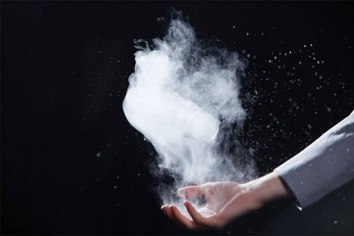 这一装置由英国设计师Alexander Groves与日本建筑师村上梓(Azusa Murakami)一同完成,同时引入了日本樱花的元素。装置会以一个焦点雕塑为中心喷出圆形的“雾霭球”,有趣的是这些白色的球碰到皮肤会爆开蒸发,碰到纺织物的时候则会维持原状。