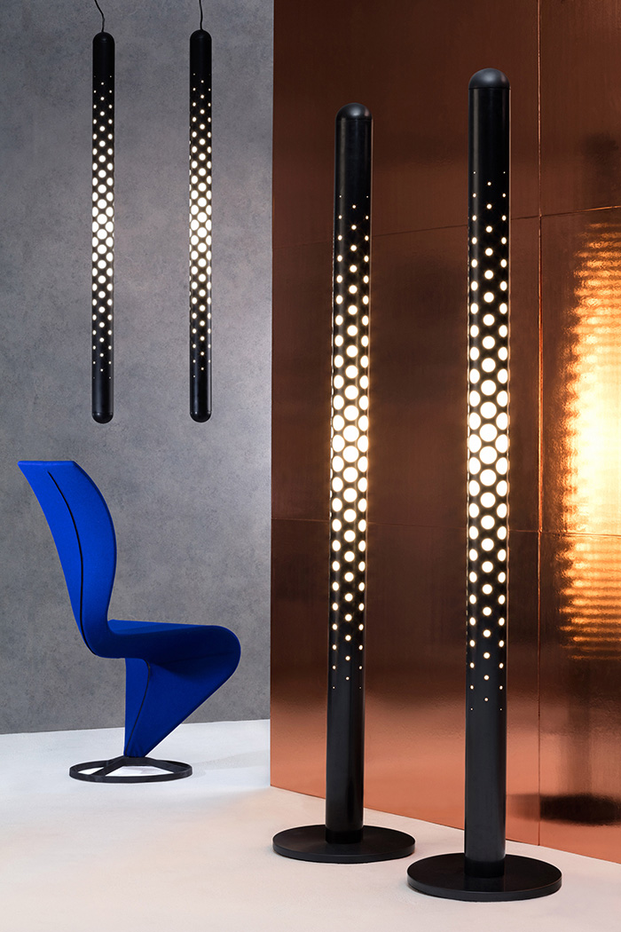 展厅中除 Tom Dixon 的一些经典设计之外,这位设计鬼才还升级了自己的一系列经典作品,比如在1980年代为知名意大利家具品牌 Capellini 创作的S椅,这一次也使用新材质和工程学将它重制。