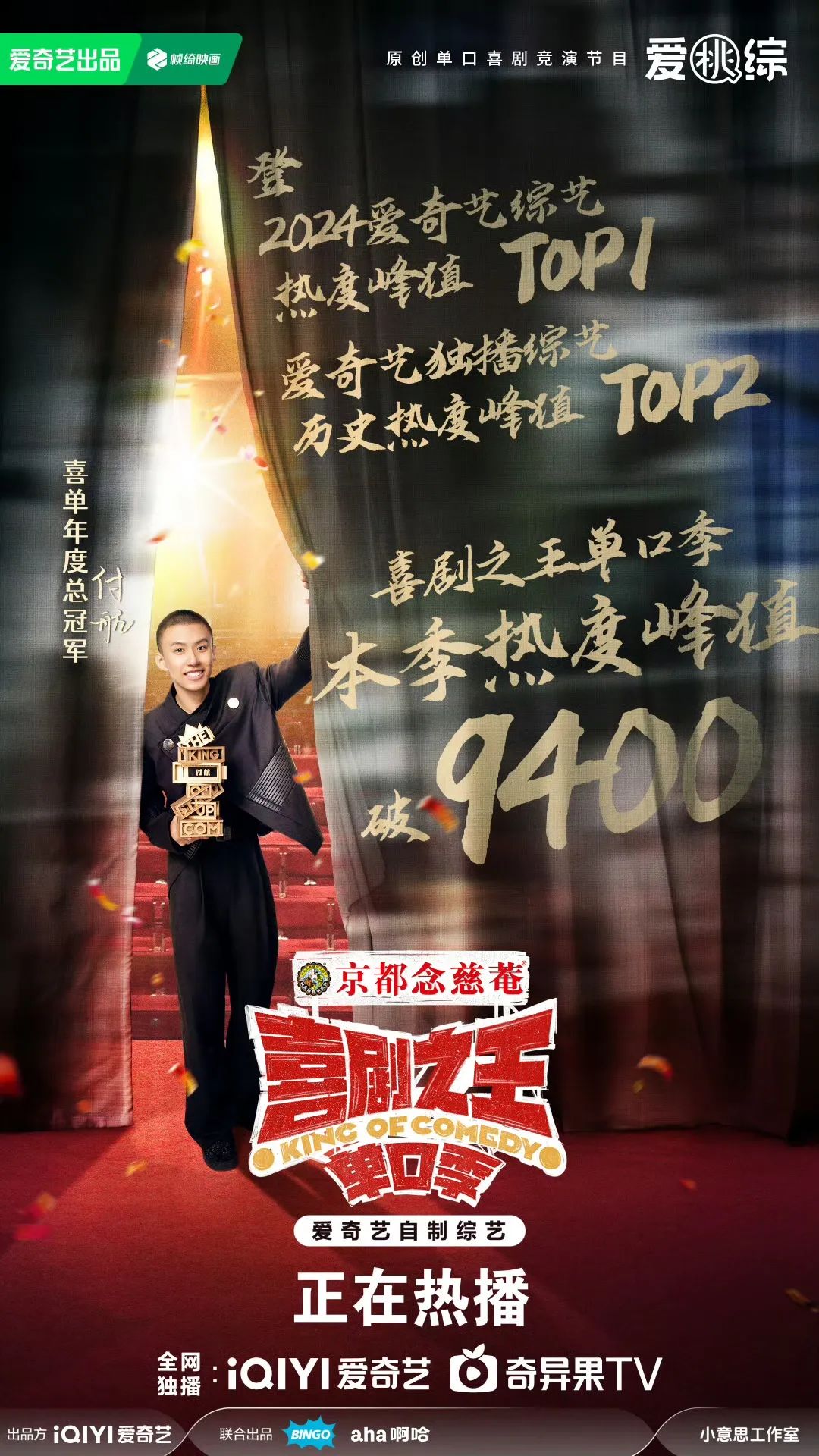 无独有偶,《喜剧之王单口季》在2024年的出现与走红不仅成功助力爱奇艺拓展了行业赛道空间与用户心智,也让整个喜综领域掀开了崭新篇章,由其衍生而出的爱奇艺自制ip喜剧晚会《下班啦2024》,不仅直接吸引到每日鲜语的独家冠名,还收获修正药业、度小满、统一冰红茶、小红书的青睐。
