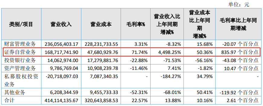 香颂资本董事沈萌表示,政策发力激活资本市场活力,股价和成交量都有明显提升,有利于券商自营业务表现。粤开证券自营业务收入基础较低,增长率较高并不罕见。