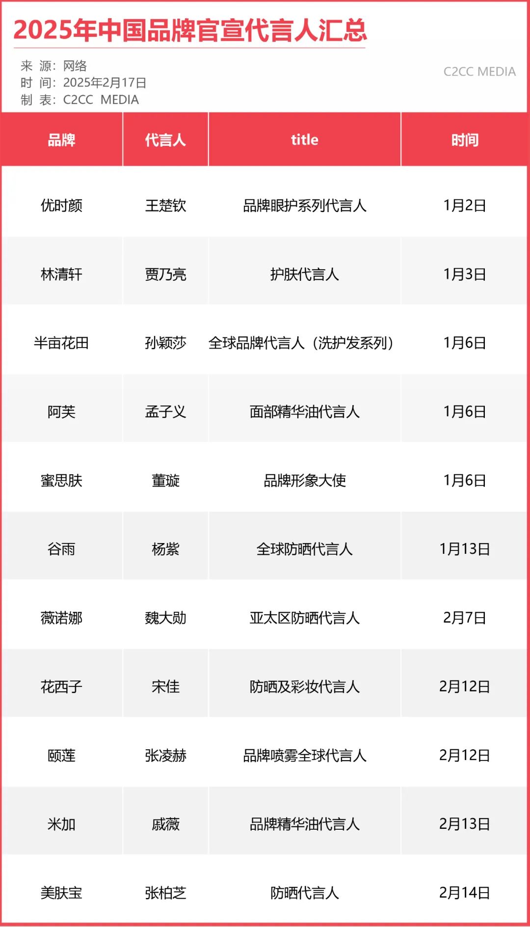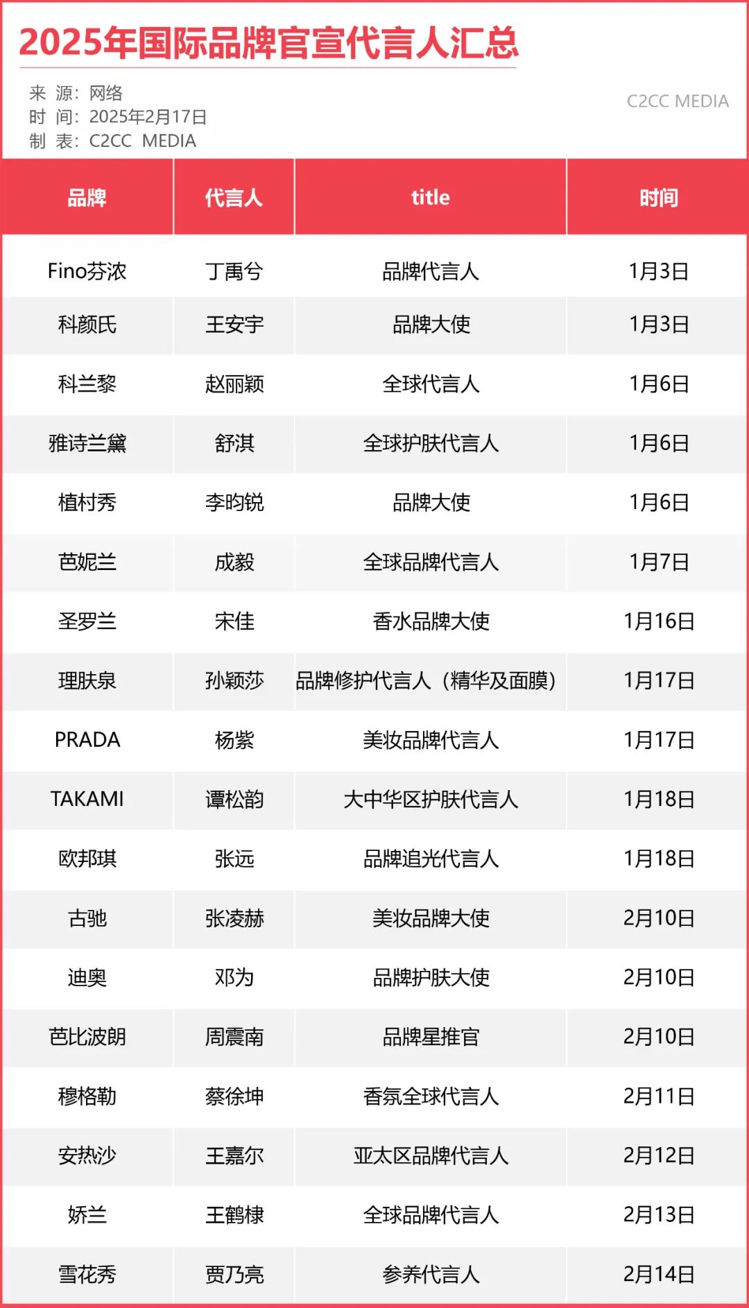 2025年伊始,美妆行业便陷入了一场激烈的“代言人争夺战”。众多品牌纷纷官宣新代言人,试图通过明星效应抢占市场先机。