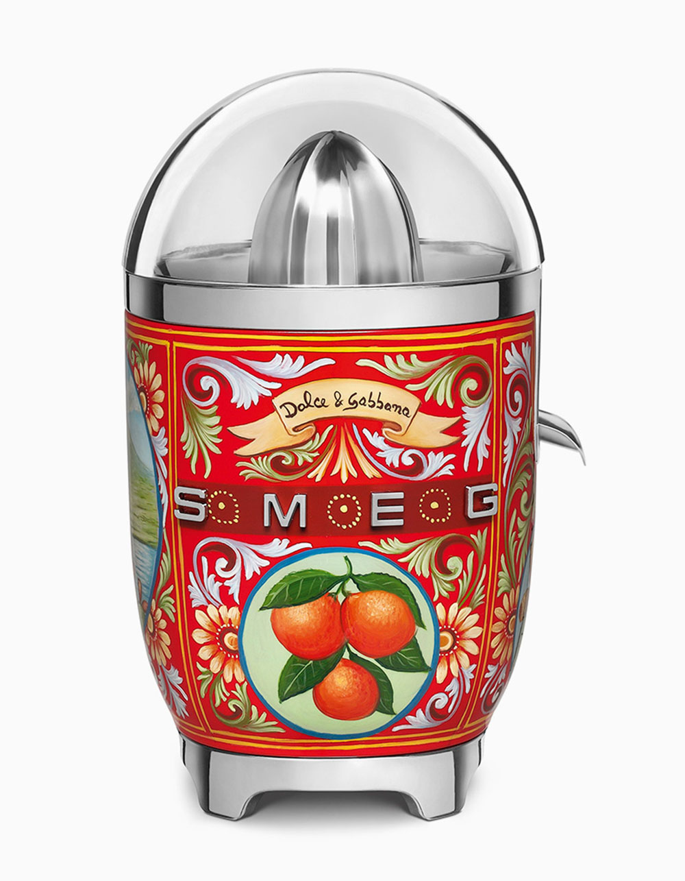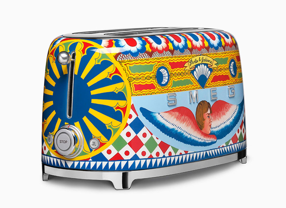 去年四月,意大利时装品牌Dolce & Gabbana与知名家电品牌SEMG继推出西西里风情的冰箱后,在今年米兰设计周上双方再次推出“意大利情怀”家电系列,名为“西西里岛我的爱”,该系列包括面包机、榨汁机、咖啡机、水壶以及搅拌机等用品——买了之后就可以光明正大地说“我家就是地中海风情!”