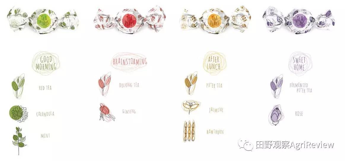 首先,产品设计上采用混合功能茶,首批推出四款产品:早茶、醒脑茶、下午茶和温馨茶”。以名为“Good Morning“的早茶产品为例,它以云南的滇红茶为主,添加了金盏菊和薄荷叶,提神醒脑,适合上午饮用。