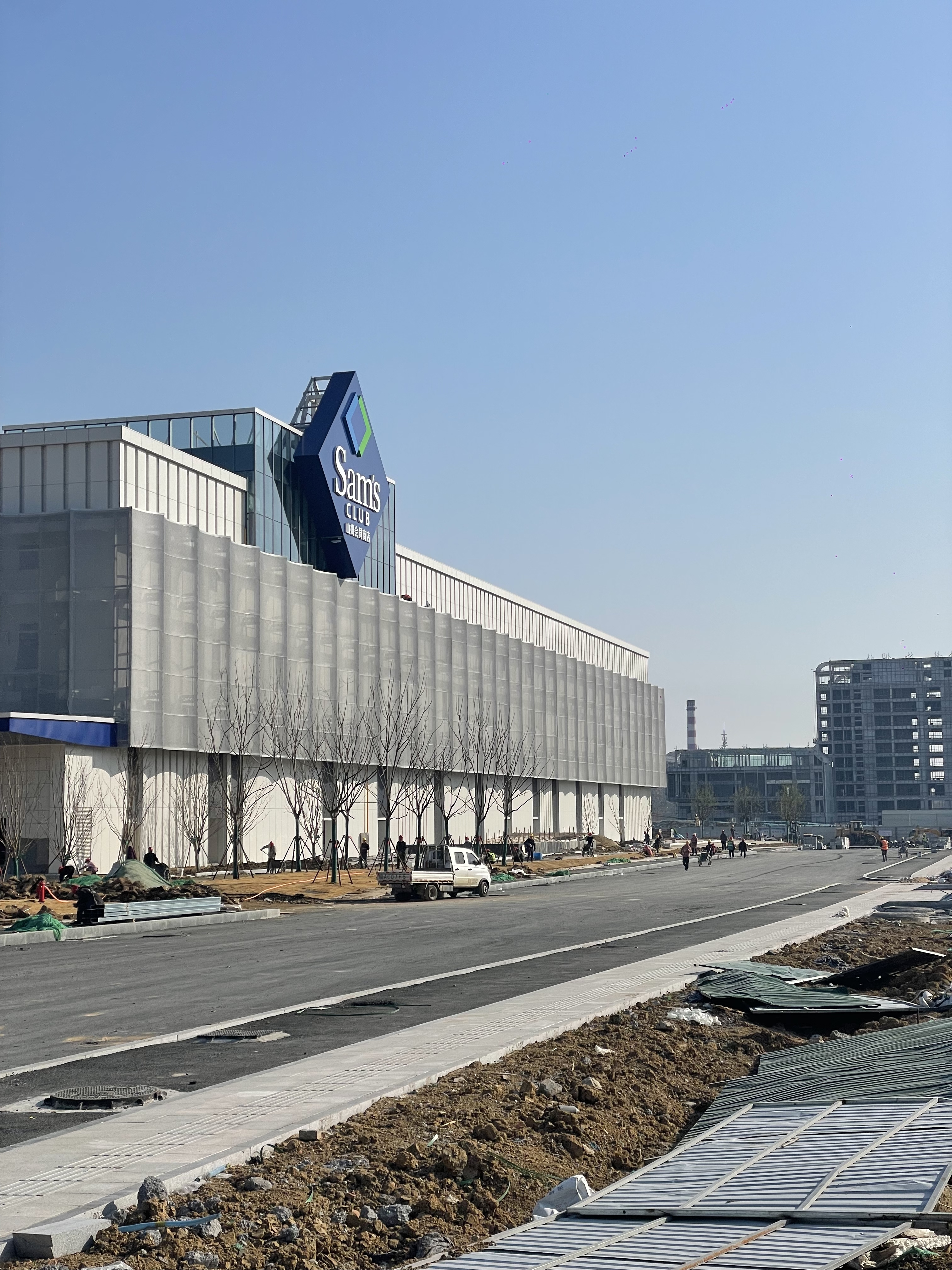 从项目外围没有围挡的区域看进去,合肥山姆超市内部已平整,没有看到脚手架等装置,目测超市内装应该也完成的差不多了。整体来看,以合肥山姆超市目前呈现的施工状态和工期进度,已经进入冲刺阶段,4月中旬开业时间上应该足够。
