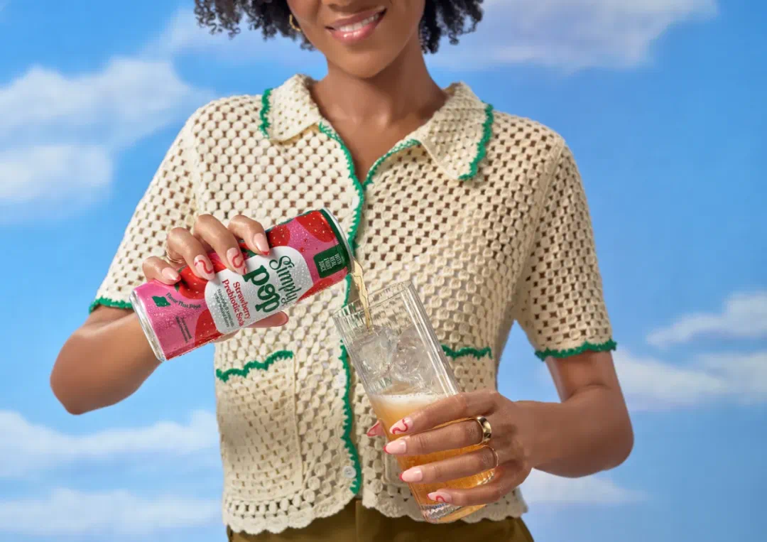 Simply Pop每罐饮料含有6克益生元纤维“以支持肠道健康”,同时含有维生素C和锌。品牌宣称产品不会额外添加糖,饮料的甜味来自原料中占比20%-30%的果汁。