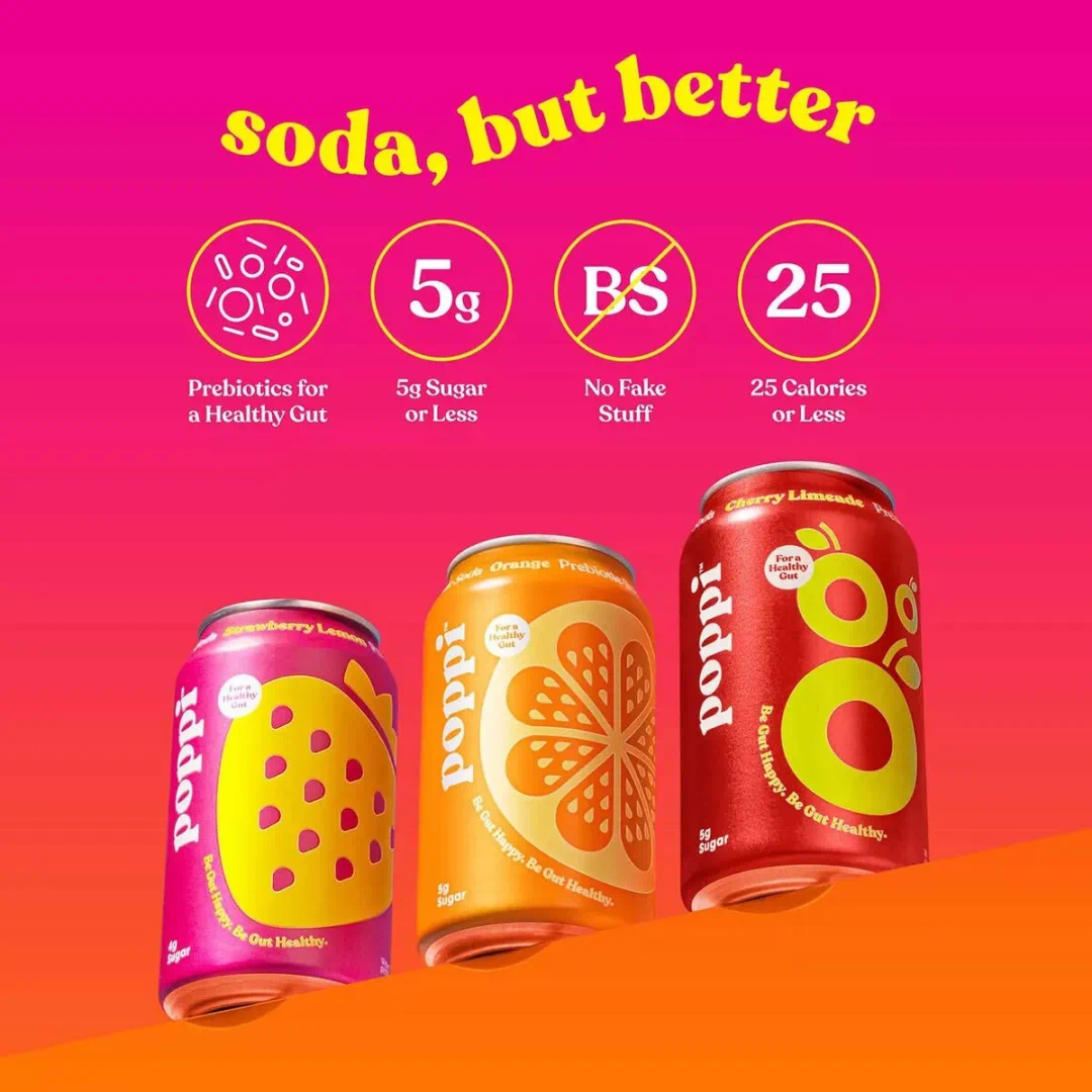 Poppi则宣传其产品少糖、低卡,且饮料中还有有益肠道健康的益生元,是“更好的苏打水”。