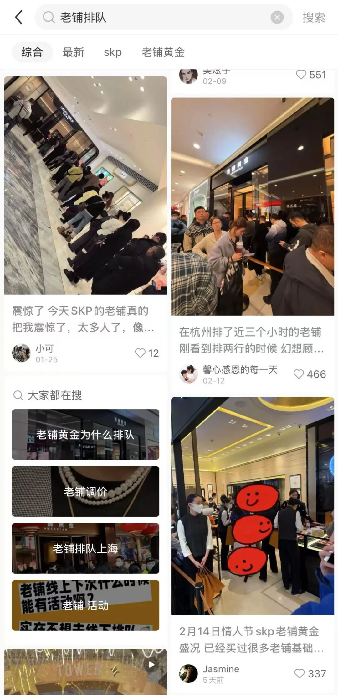 对比来看,老铺黄金虽贵,但排队也能让贵妇们买出“精打细算”的满足感。