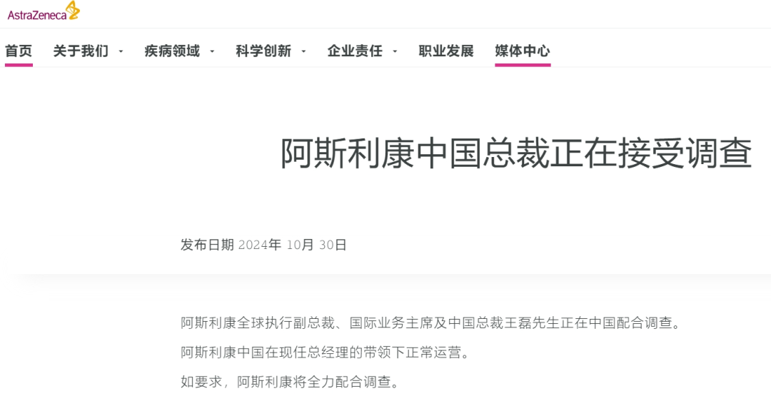 在国家医保局的声明中,事件的调查结果是将“犯罪嫌疑人全部批捕”,却并没有涉及到阿斯利康公司。之所以没有处罚公司,是因为阿斯利康在合规性调查中非常配合。