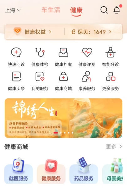 据了解,近期中国人保旗下的自营平台人保APP上线了健康生活页,围绕客户就医、健康、药品、母婴、养生等,以各类人群健康早筛、综合服务为重点,为用户提供一站式多学科、个性化健康指导、预防和医疗服务,构建预防、治疗、康复等一体化健康服务新模式。其内容包含健康服务,如快速问诊,用户通过页面提交症状和身体情况的描述和图片等即可获得专业医生的答复;康养服务则涵盖用户的健康养老管理,包含护士上门、专业护理等各种服务;而该平台的健康商城则更是覆盖各类人群体检套餐、中医治疗推拿、洁牙卡等服务,对接第三方机构,让用户使用一个APP就能完成保险+健康一站式体验。