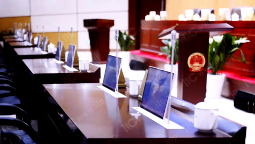 江苏某市人大常委会会议厅作为商讨地方经济发展大计、立法、监督、人事任免的重要场所,对会议效率与环保有着极高要求。itc根据人大常委会会议的特殊性,为其配置了itc无纸化会议系统,外观简约大方,功能强大丰富,能够全面满足人大常委会各类工作会议需求。