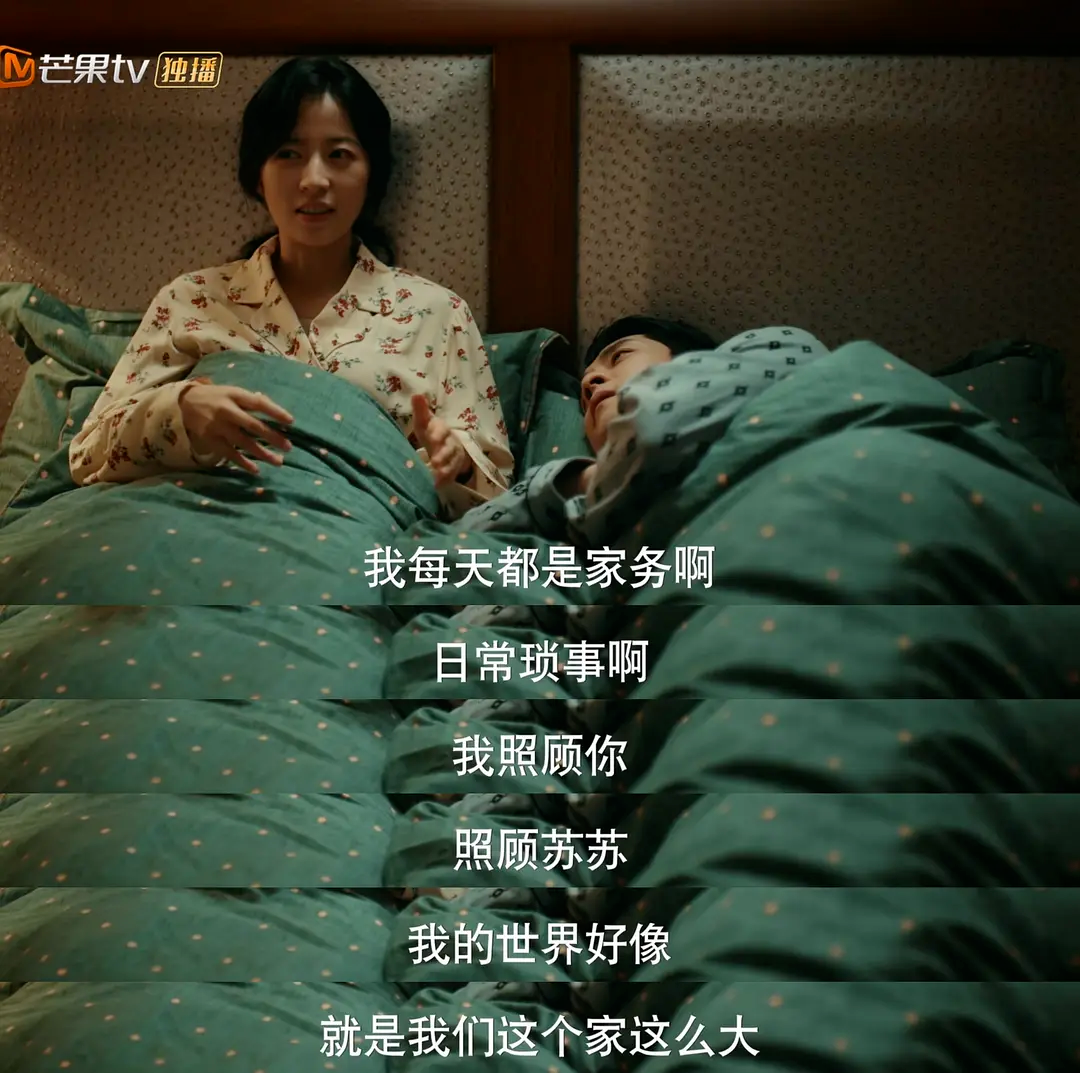 而外婆这个角色的加入就像一颗纽扣盘活了全局,不论是外婆和吴俪梅、还是吴俪梅和顾云苏,一代又一代的母女就这么拧巴又心疼彼此地相处着。不一样的是,外婆多年以后终于懂得了女儿吴俪梅并想尽力弥补,但此时的顾云苏还没有完全了解自己的母亲。