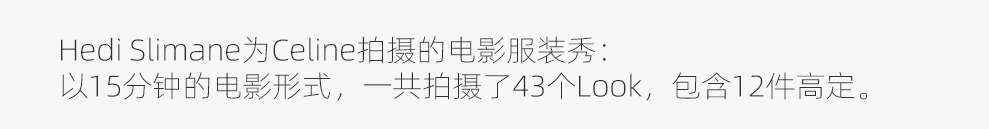 正如,Hedi Slimane当年被Celine请来重塑品牌,他不仅要负责把控所有的面料、样衣等,还要负责思考“品牌到底该以怎样鲜明的形象出圈”。2023年1月以来,Celine就不再实体办秀,转而拍摄耗费数月和数百万美元的时尚影片。
