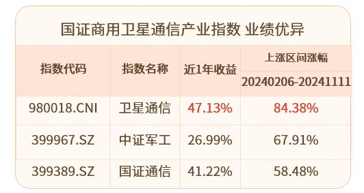 这一赛道的爆发力已在资本市场显现,在2024 年 2 月开始的卫星通信行情中,卫星ETF跟踪的国证商用卫星通信产业指数累计上涨 84.38%,大幅超越同类指数;前十大成分股去年2 月6日以来平均涨幅近 100%,亦展现出强力的弹性。