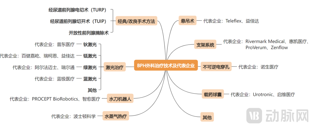 BPH外科治疗各技术路径代表企业,动脉网制图