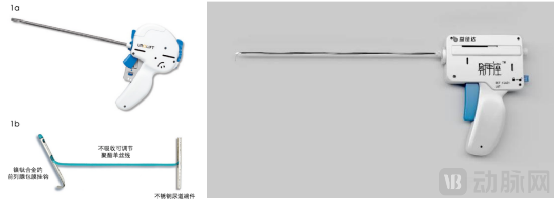 图左:Teleflex公司的Urolift系统;图右:益佳达的前列腺悬吊支架产品“射手座”