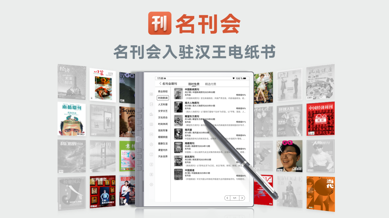 名刊会的入驻,标志着汉王电纸书在内容资源上的一次重要升级。通过合作,名刊会为汉王电纸书平台带来了丰富的期刊资源,而汉王电纸书则为名刊会提供了强大的硬件支持,确保用户能够享受到更加完美的数字阅读体验。