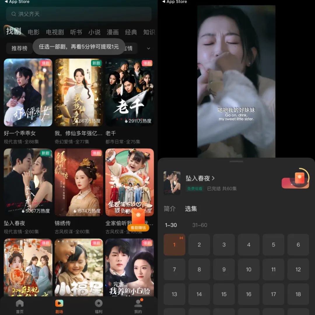 获客方面,红果还照抄了拼多多和趣头条的作业——通过“看剧赚钱”的网赚模式吸引用户。用户只要看剧就能赚金币,金币攒够数就能提现。