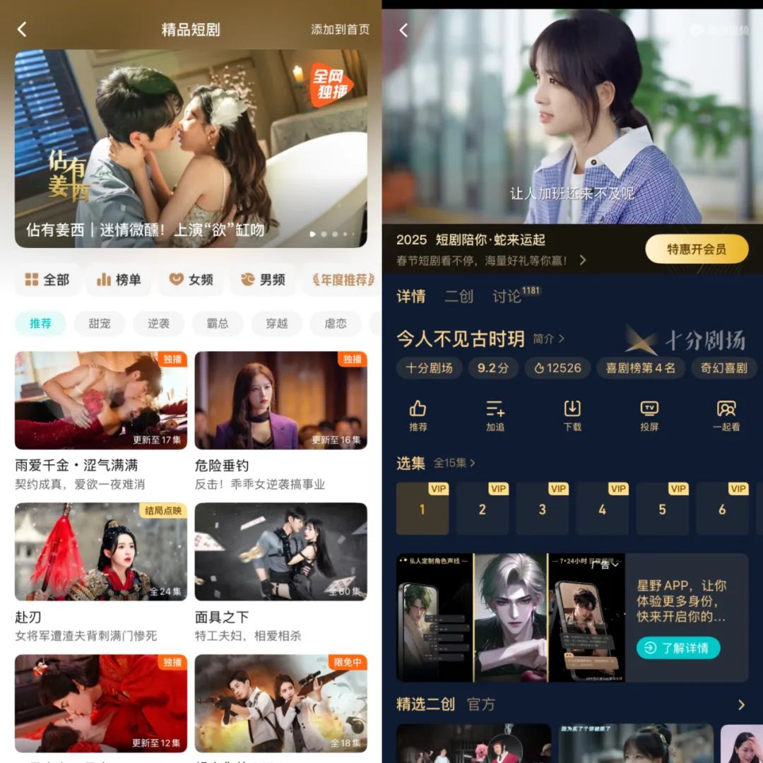 除了腾讯视频,爱奇艺也将精品短剧作为主推方向。爱奇艺的“短剧场”主打横屏,覆盖古装、悬疑、都市情感等类型,强调剧情完整性和制作水准向长视频靠拢,例如使用专业分镜、电影级画面和科班演员。