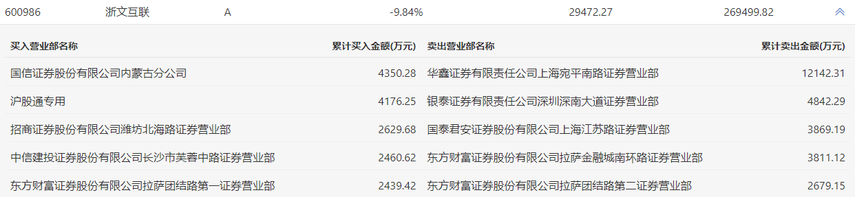 浙文互联2月24日跌停,龙虎榜数据显示,上榜营业部席位全天成交4.34亿元,占当日总成交金额比例为16.1%。其中,买入金额为1.61亿元,卖出金额为2.73亿元,合计净卖出1.13亿元。