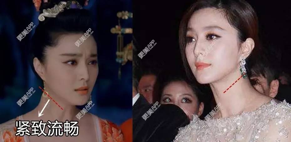 范冰冰虽然身材处于微胖界,但她脸部线条比皮筋还紧致,尤其侧面的“下颌线”