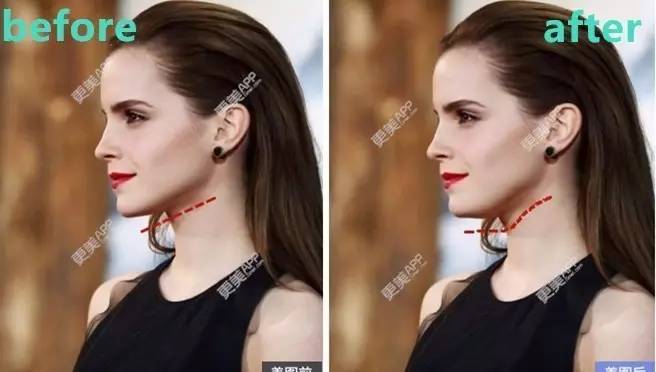 虽然下颌线是从耳朵到下巴的线,貌似和双下巴无关,但双下巴就像画线条的时候手抖,一不小心直线就变成了曲线……所长手欠的给艾玛沃森加了双下巴,100分的下颌线变成了50分
