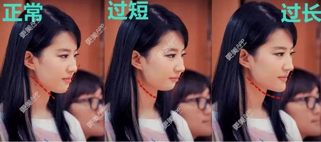 最后下颌线过短过长都不好看,只有下颌线的最顶点也就是下巴和嘴、鼻尖在一条线上才刚刚好,所以下巴也很重要哦,关于下巴的科普,戳这里哦 科普 | 怎么垫下巴,才有范爷的完美脸型