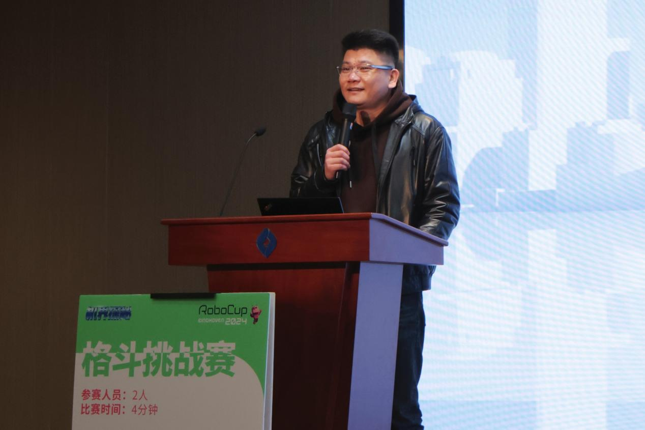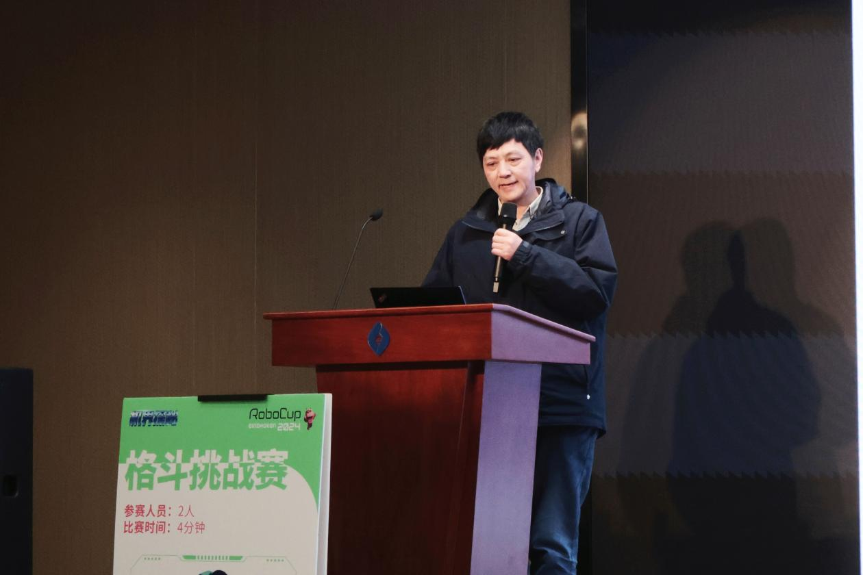 吴斌,2024机器人世界杯冠军总教练、中国科学院研究员、博士生导师、合肥市青少年科技创新教育学会会长、安徽省青少年智能创新公开赛专家委员会主任,向现场的家长孩子细致地介绍了目前的国内国际赛事,也向大家展示了以往带队参加国际赛事的图片。吴斌表示不同于既有的高考应试,智能创新教育是为小朋友们提供了另外一条成长的道路和选择,而不是说只有高考这一条道路。