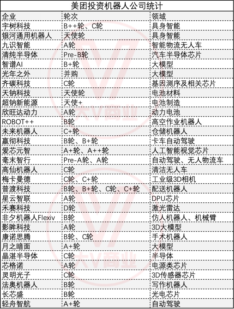 粗略估算,目前美团已投资超过30家机器人及相关上下游、大模型等公司,其中包括多个细分领域的机器人头部企业。