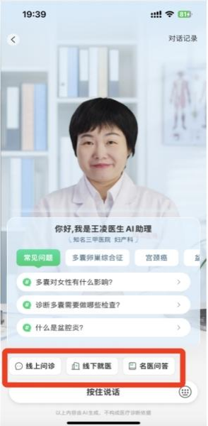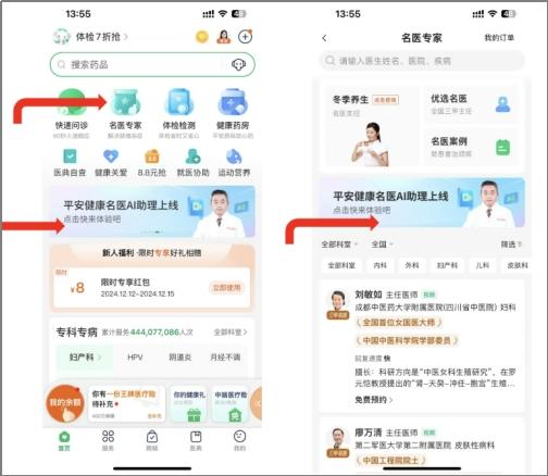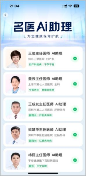 "人的精力是有限的,而共建的智能体-名医AI助理能能提供方便、免费且同样有温度的医疗知识和咨询服务,这是非常有意义的",带着这样的初衷,现实中的医生专家们与平安健康共同建设、训练AI分身,基于三大数据层,将海量知识图谱与医生个人临床实践结合,并不断进行医患模拟,提升服务精准度。目前平安健康"平安芯医"已上线肛肠外科、肝胆外科、妇产科相关专科大咖医生,包括:2024年"金扁鹊"中医百强个人王凌医生,深圳肝胆外科第一人王成友医生等。