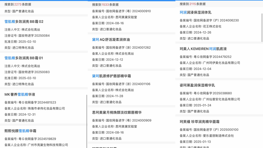 2024年,高丝、花王在进博会上透露,今年会在华引入新产品线,如雪肌精Blue系列、珂润润浸保湿隔离修护霜等,现国家药监局备案均已获批。