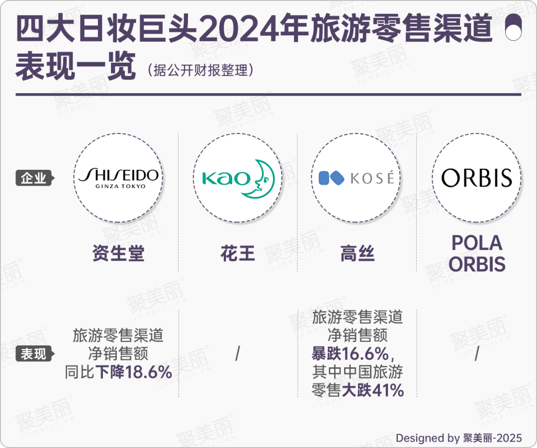 如资生堂在财报中指出,2024年全球旅游零售渠道下滑18.6%,主要原因系中国游客消费低迷,尤其是韩国及海南岛两大免税渠道均下滑超30%。