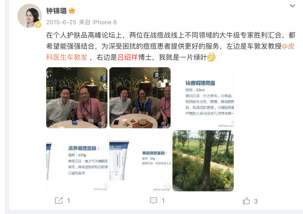 目前在钟锦璐的微博还能搜到自2015年起,她发布的与吕绍祥共同参加行业会议活动的内容。