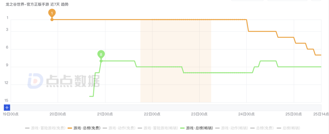 点点数据显示,《龙之谷世界》上线当天位居iOS游戏免费榜榜首,截至2月25日,其在iOS免费榜、畅销榜中分别位居第7名、第9名的位置。