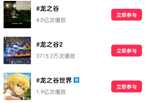 (三)社交平台传播 在抖音平台,关于“龙之谷”的相关话题有超4亿次的播放量;关于“龙之谷世界”的相关话题有超1.9亿次的播放量。