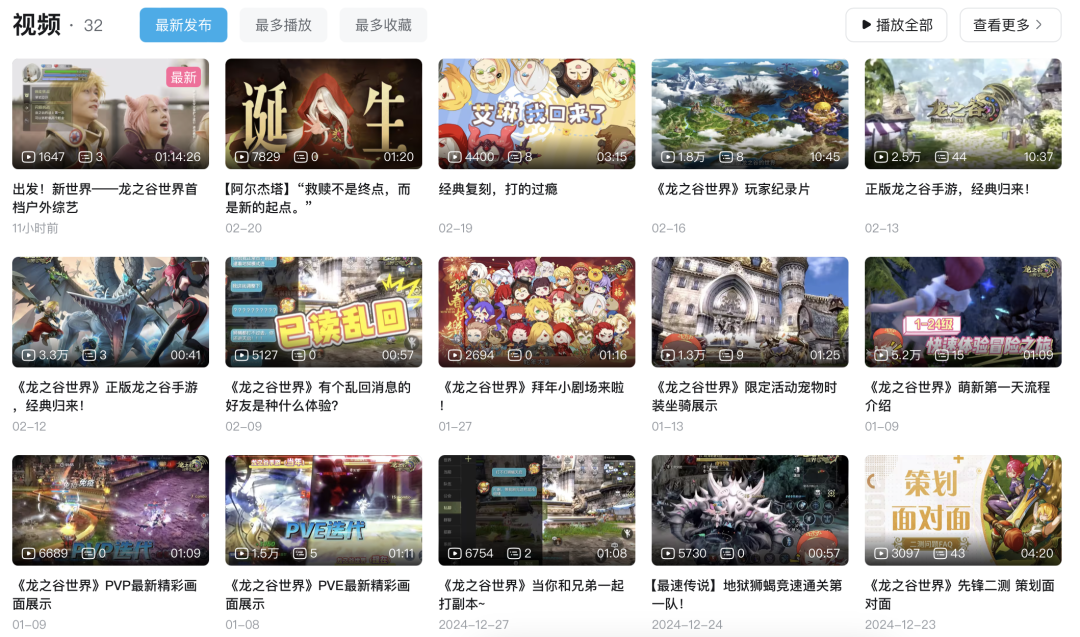 在抖音平台,《龙之谷世界》发布了多条传播内容,但整体的播放量并不高。