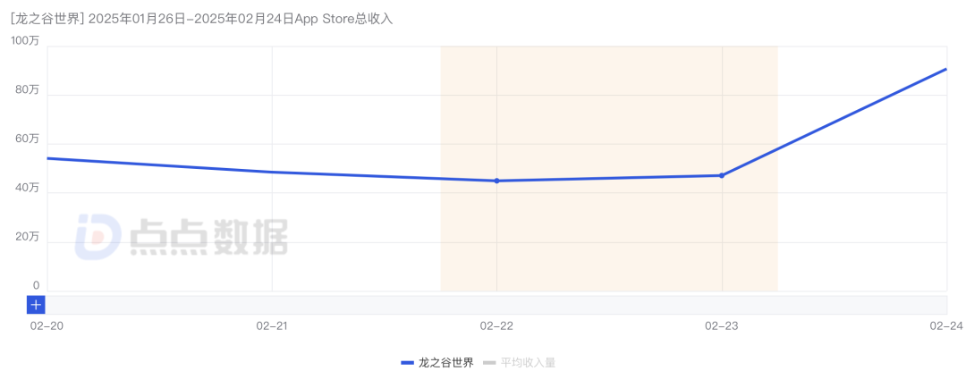 点点数据显示,截止至2月24日,《龙之谷世界》在iOS平台预估收入超2068万元(扣除平台分成),且其收入是呈现持续攀升的趋势。