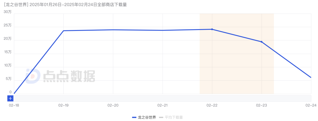 点点数据显示,截止至2月24日,《龙之谷世界》在iOS平台预估下载量超120万次(含18日、19日预下载)。