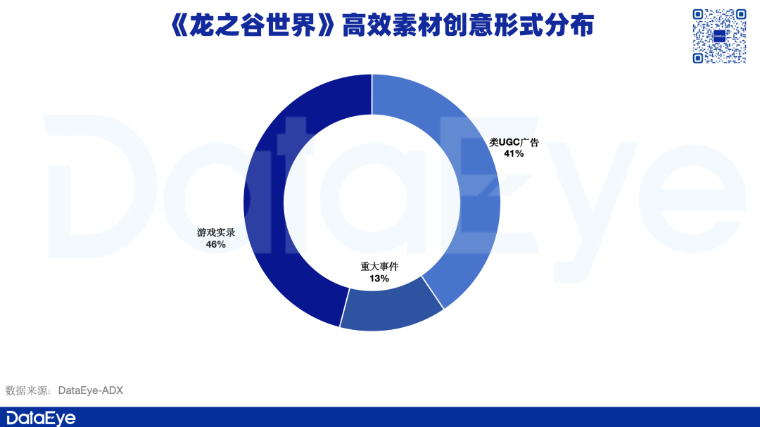 DataEye-ADX数据显示,《龙之谷世界》TOP50高效素材的创意形式中,基本都是类UGC广告、游戏实录素材。
