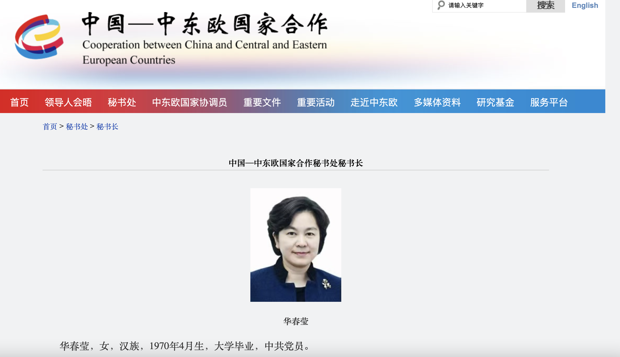 2月26日消息,中国—中东欧国家合作秘书处官网更新显示,华春莹已任中国—中东欧国家合作秘书处秘书长。