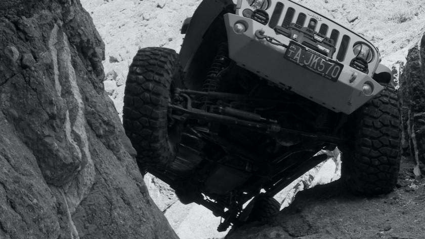 影片中的“越野”,可不是《疯狂的麦克斯4:狂暴之路》中那样的大脚车一路狂飙。这些路就算是步行,在不少阶段都需要人手脚并用才能爬的过去。短短七公里,一步一个坑。汽车行进在其中,每,一脚油门都有着侧翻的危险。